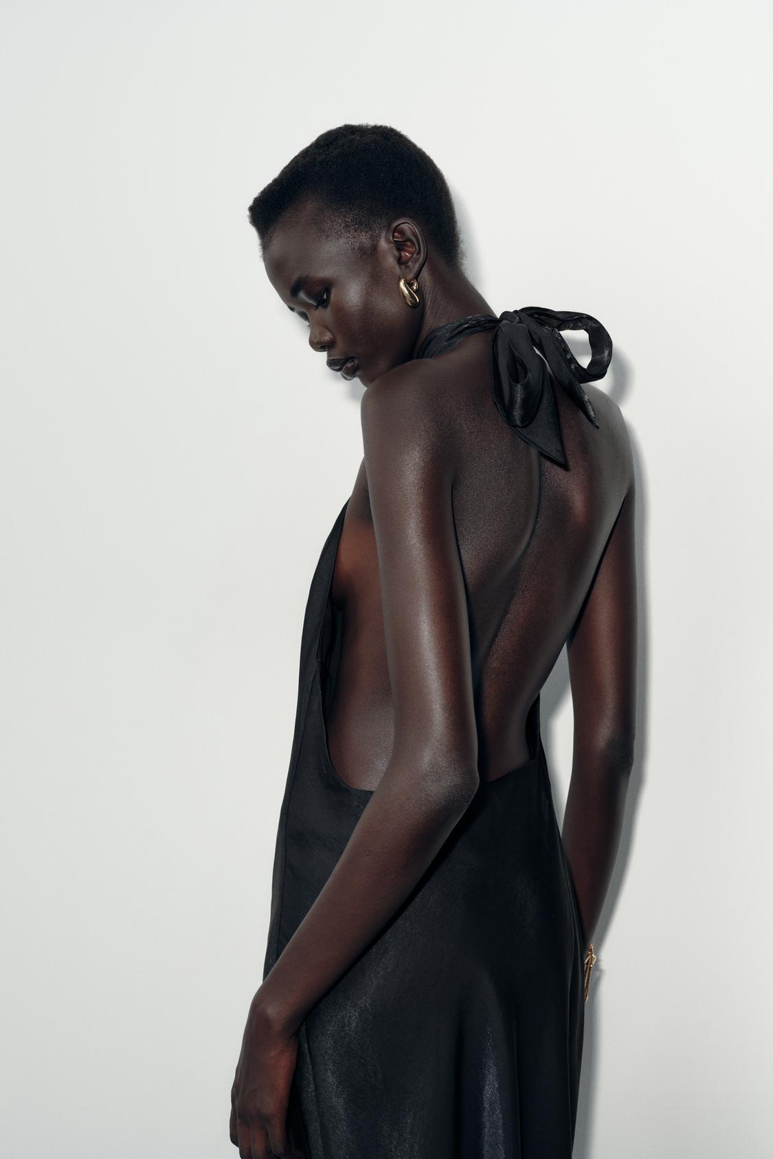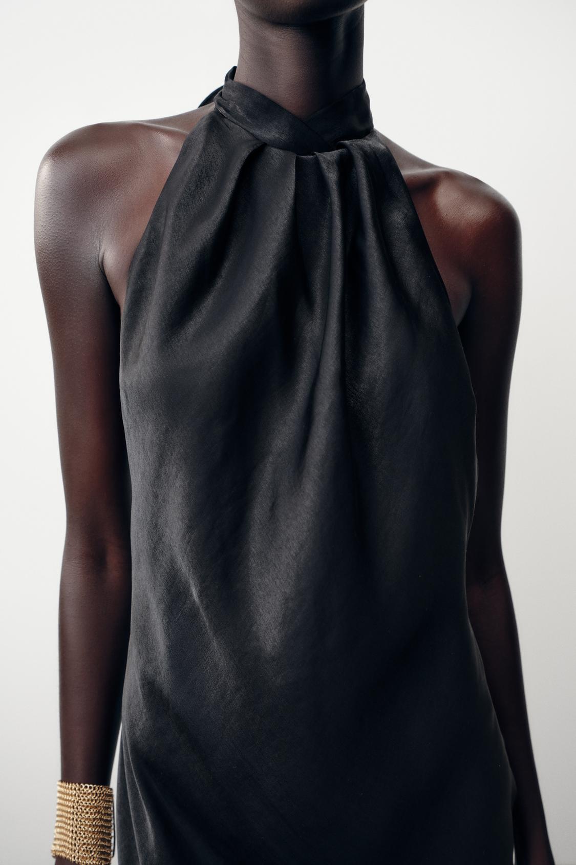 Halter Neck Satin Midi Dress