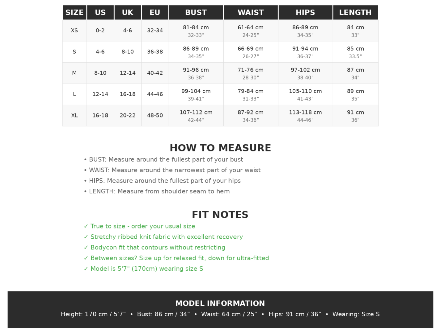 Model Info: Height 5'7" (170 cm) | Wearing size S | Bust 32" (81 cm) | Waist 25" (64 cm)