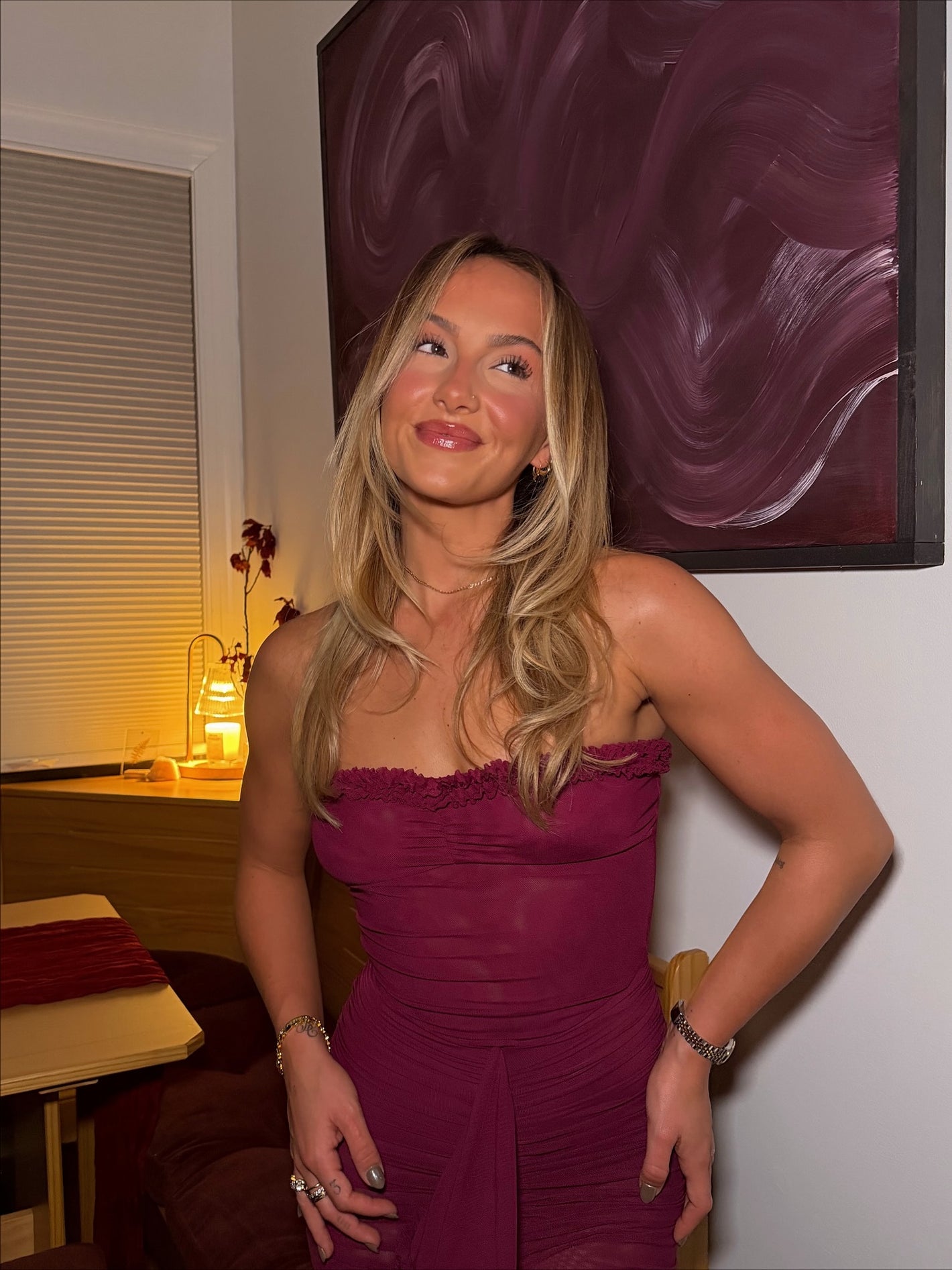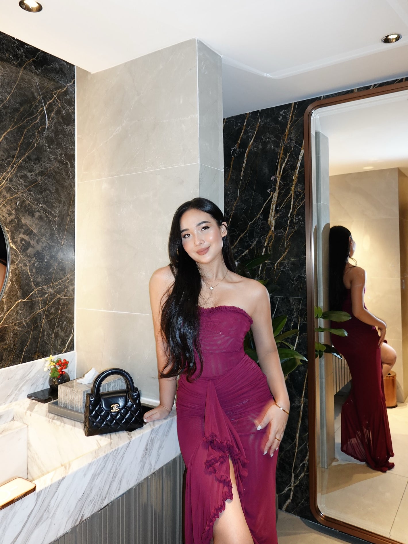 Trop belle cette robe ! Je l'ai portée pour un gala et c'était nickel. La couleur bordeaux fait très classe. Attention par contre, c'est moulant donc si vous hésitez entre deux tailles prenez la plus grande. Moi ça allait parfait en S.